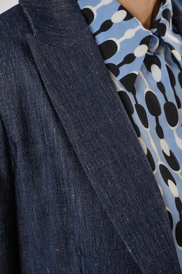 Синий жакет Penny Black Black из денима — стильное и комфортное решение для создания современного образа. Прямой крой и лацканы придают жакету классический вид, а сочетание льна, хлопка и эластана обеспечивает удобство в носке. Состав: лен 50%, хлопок 48%, эластан 2%