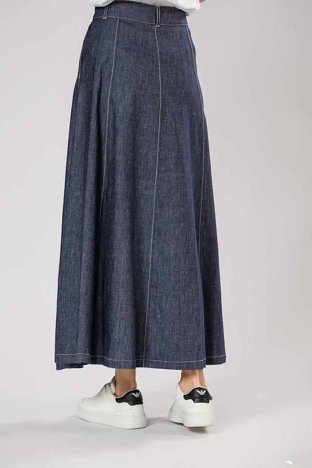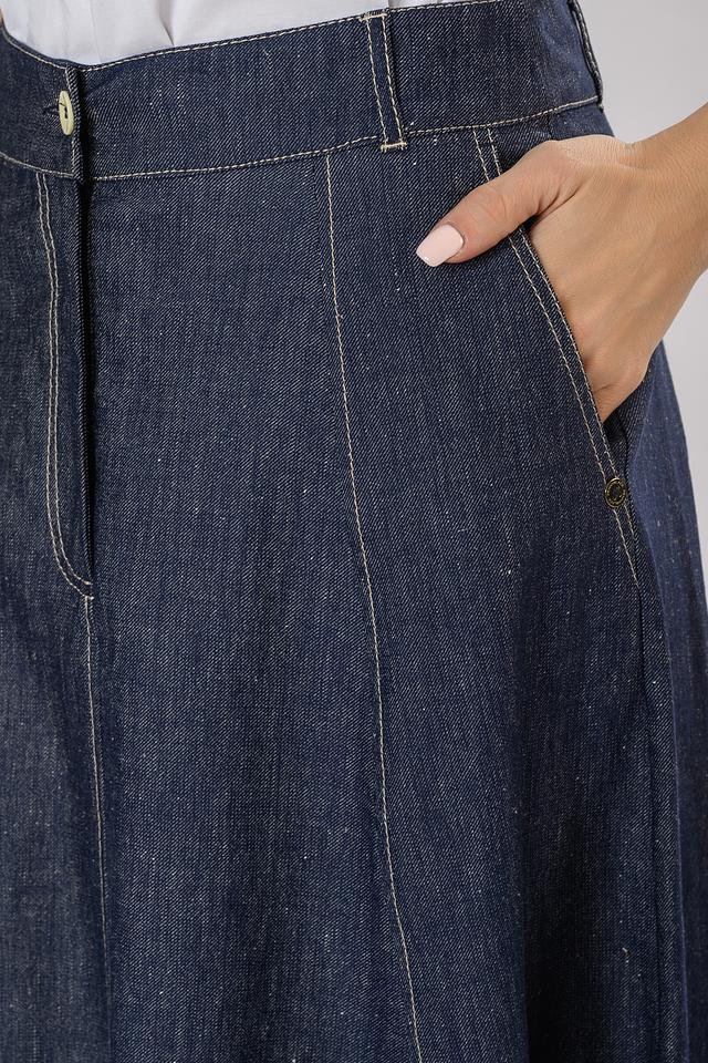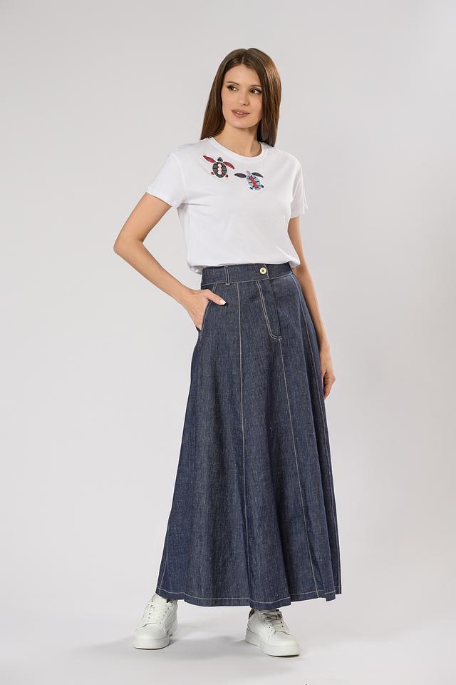 Джинсовая юбка Penny Black макси длины выполнена в классическом синем цвете. Модель имеет высокую посадку, застежку на молнию и пуговицу, а также функциональные карманы. Идеальный выбор для создания стильного и комфортного образа. Состав: лен 50%, хлопок 48%, эластан 2%