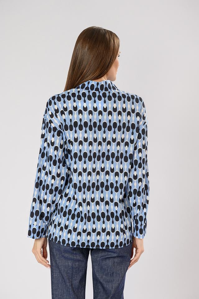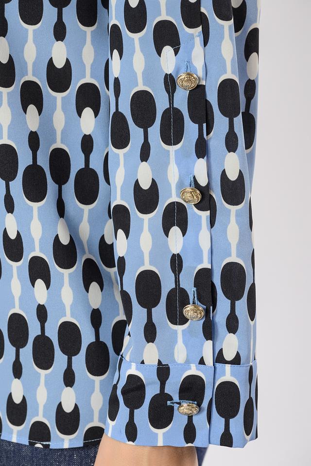 Эта блуза от Penny Black Black – отличный выбор для создания элегантного и современного образа. Блуза выполнена в светло-голубом цвете и украшена ярким принтом в виде черных и белых горошков.