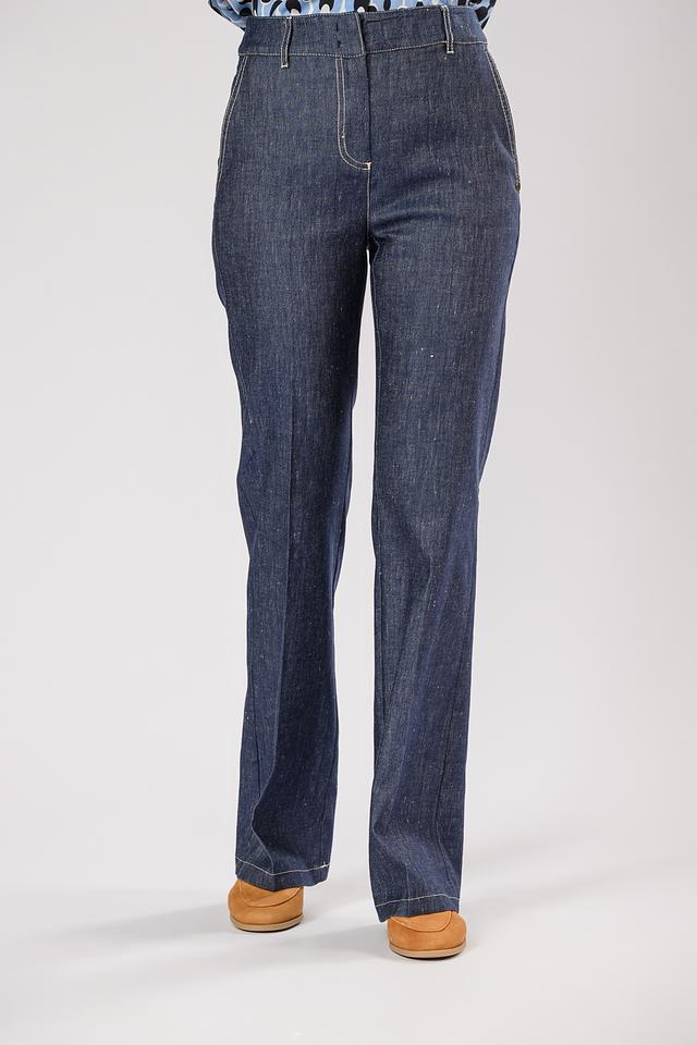 Синие джинсовые брюки Penny Black широкого кроя — стильное и комфортное решение для создания повседневных образов. Модель выполнена из сочетания льна, хлопка и эластана, что обеспечивает удобство носки и приятные тактильные ощущения. Состав: лен 50%, хлопок 48%, эластан 2%