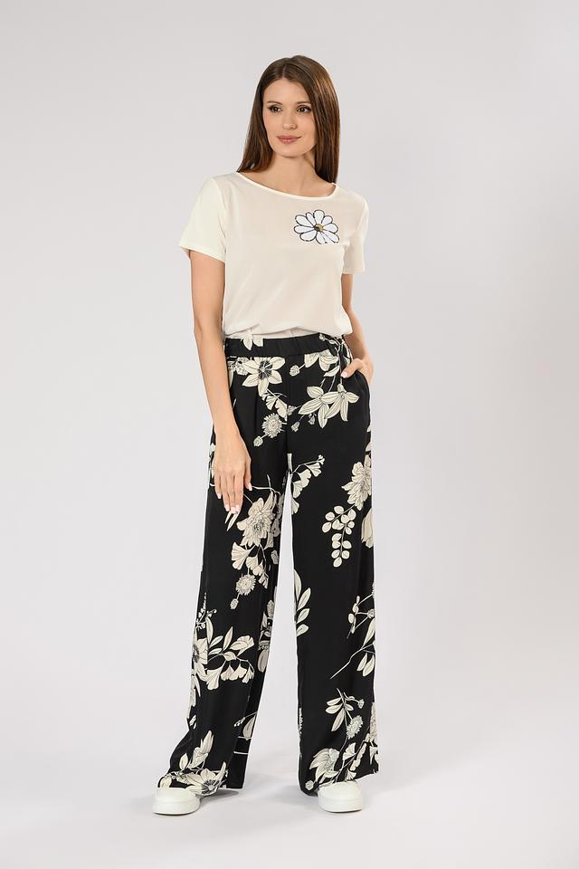 Эти брюки от Penny Black – идеальный выбор для создания элегантного и комфортного образа. Брюки выполнены в чёрном цвете и украшены ярким цветочным принтом, который добавляет им женственности и оригинальности.