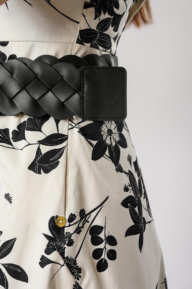 Ремень имеет оригинальную плетёную структуру, которая придает ему особый шарм. Чёрный цвет делает его универсальным и подходящим к различным стилям одежды. Пряжка выполнена в золотистом цвете, что добавляет аксессуару элегантности.