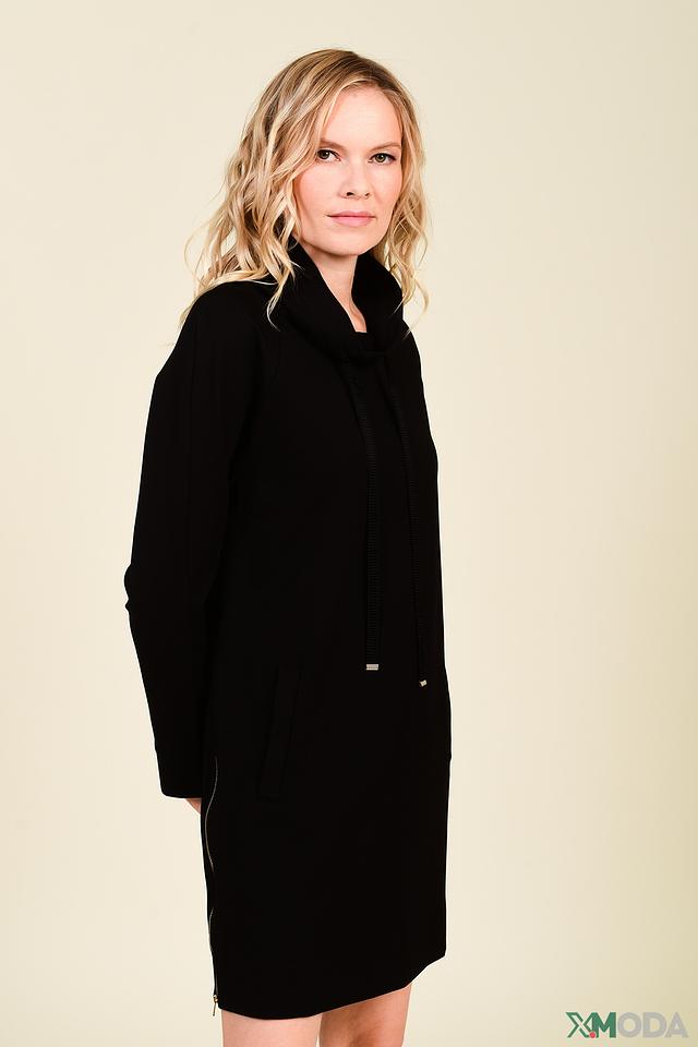 Черное платье Penny Black Black из мягкой вискозы с капюшоном и удобными карманами. Полуприлегающий силуэт и длина миди делают его идеальным выбором для повседневной носки. Дополнено функционарной молнией. Состав: вискоза 65%, нейлон 30%, эластан 5%