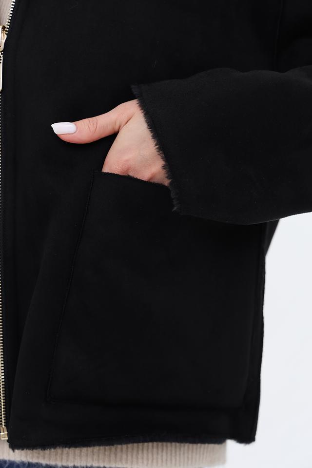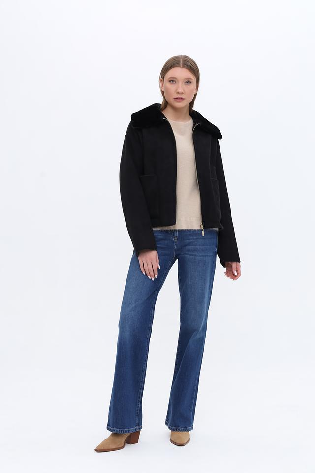 Куртка имеет прямой крой и застегивается на молнию. Высокий воротник отделан мягким искусственным мехом, который добавляет образу изысканности и защищает от холода.