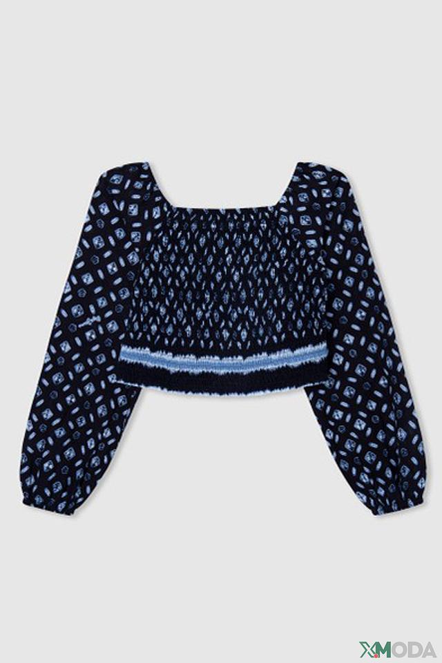 Эта стильная блуза от Pepe Jeans London станет отличным дополнением к гардеробу юной модницы. Блуза выполнена в насыщенном синем цвете и украшена ярким геометрическим принтом, который придает ей игривый и современный вид.