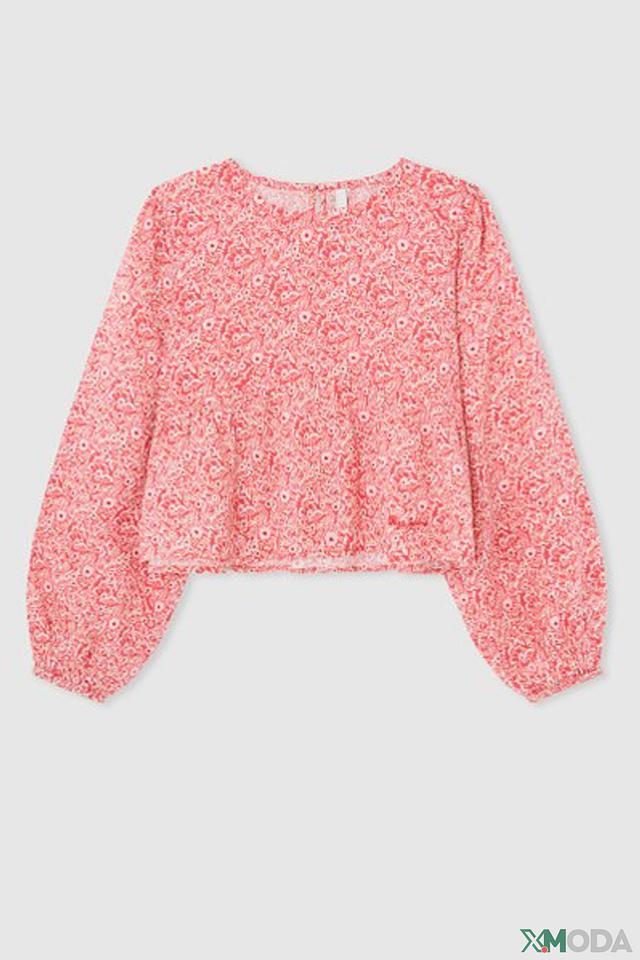 Блуза Pepe Jeans London розовая с цветочным принтом и рукавами-фонарикамиБлуза Pepe Jeans London розовая с цветочным принтом и рукавами-фонариками