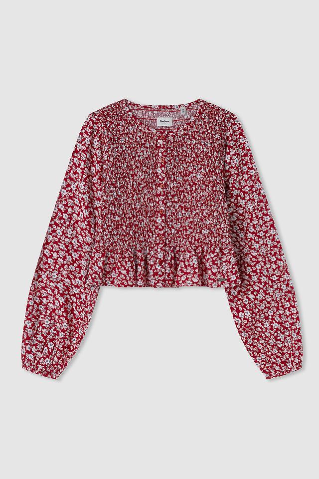 Стильная блузка Pepe Jeans London для девочки, выполненная в красном цвете с нежным цветочным принтом. Модель с длинными рукавами и сборками, обеспечивающими комфорт и свободу движений. Состав: вискоза 100%