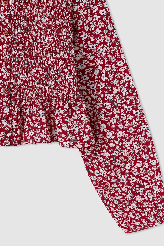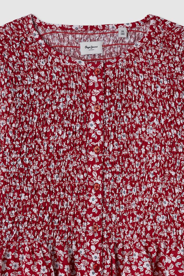 Детская блузка Pepe Jeans London винного цвета с нежным цветочным принтом станет отличным дополнением к школьному гардеробу. Модель выполнена из мягкой вискозы, имеет длинные рукава и сборки для комфортной посадки. Состав: вискоза 100%