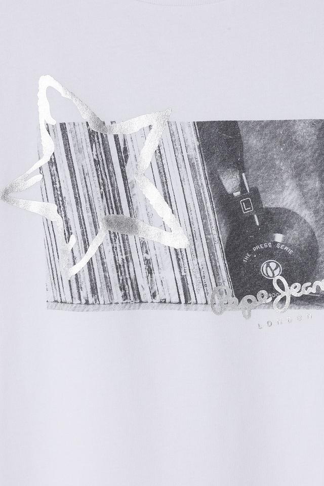 Эта футболка от Pepe Jeans London станет отличным дополнением к гардеробу юной модницы. Футболка выполнена в белом цвете и украшена эффектным принтом в виде звезды и графических элементов.