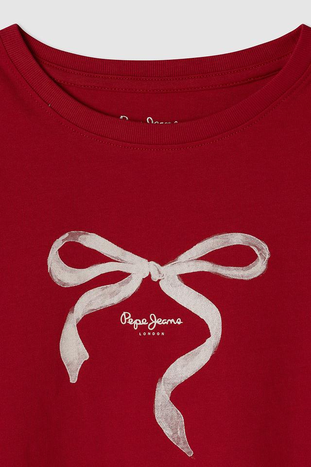 Эта яркая и стильная футболка от Pepe Jeans London станет отличным дополнением к гардеробу юной модницы. Футболка выполнена в насыщенном красном цвете и украшена декоративным бантом, придающим образу игривость и очарование.