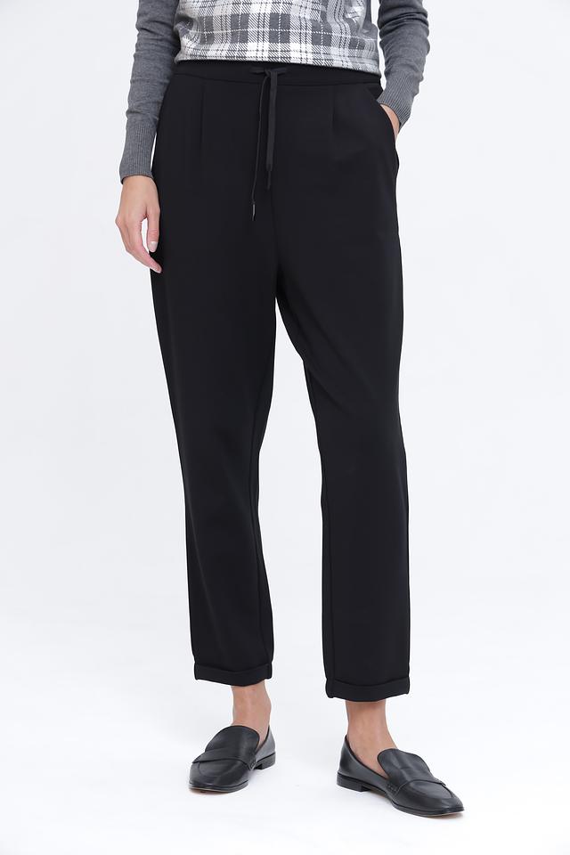 Брюки имеют прямой крой и зауженный книзу силуэт, что придает им современный вид. Эластичный пояс дополнен шнурком для регулировки посадки. Ткань состоит из нейлона (60%), вискозы (35%) и эластана (5%), что обеспечивает комфорт и свободу движений.