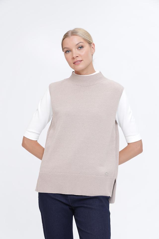Бежевый жилет Pezzo – это стильный и универсальный элемент гардероба. Выполнен из мягкого трикотажа с добавлением акрила, имеет удобный воротник-стойку и боковые разрезы. Состав: хлопок 60%, акрил 40%