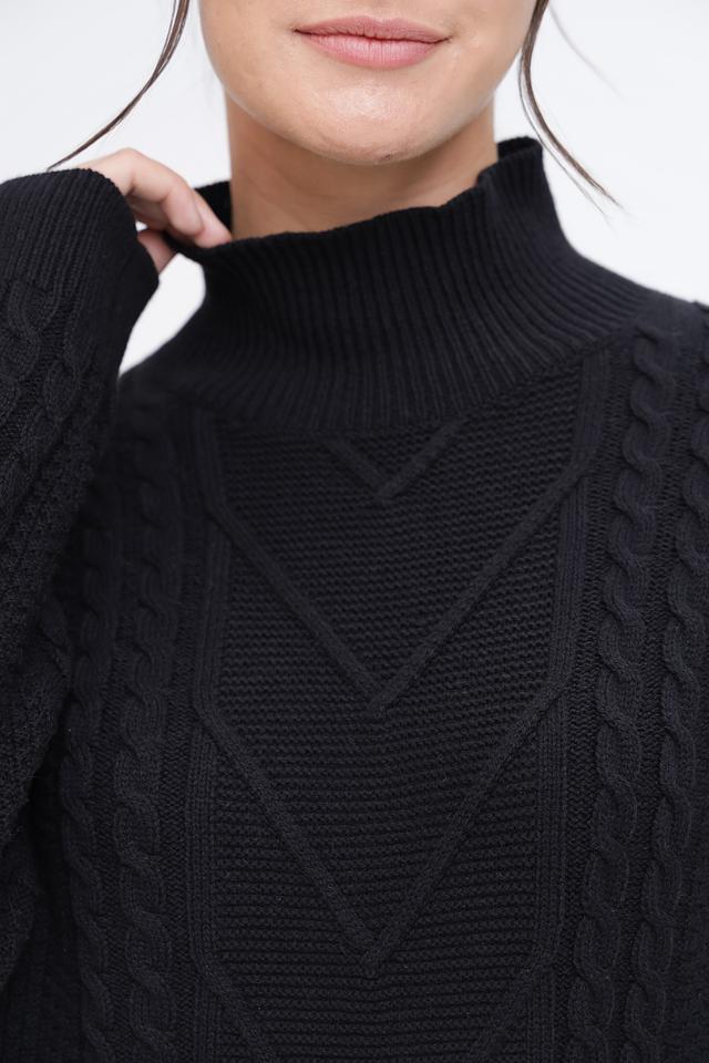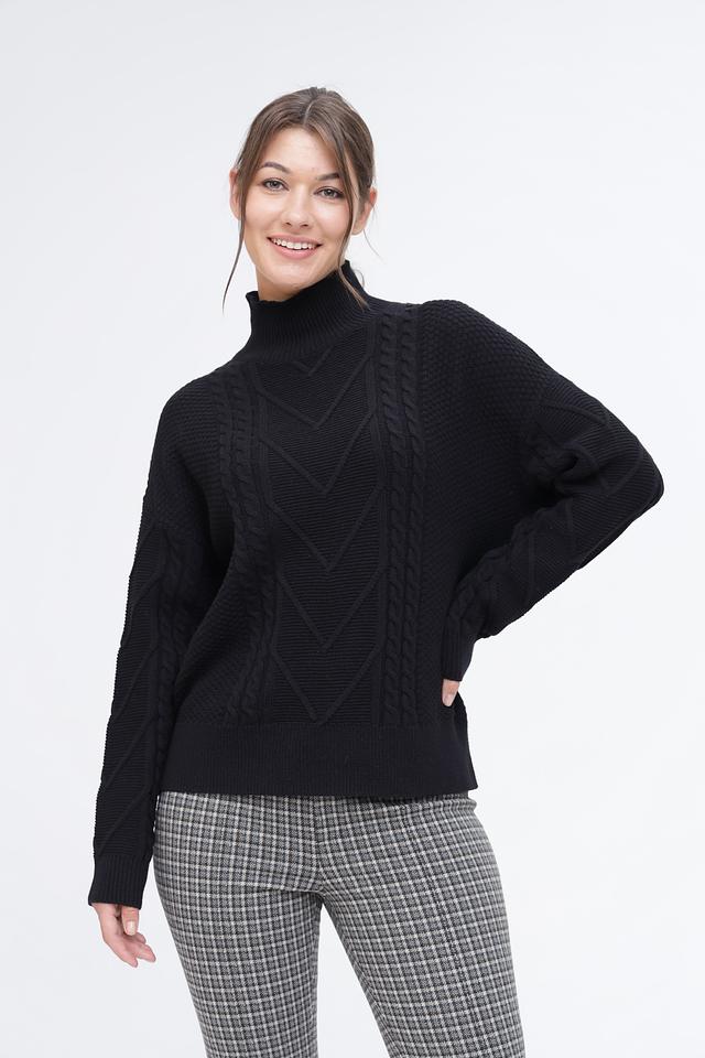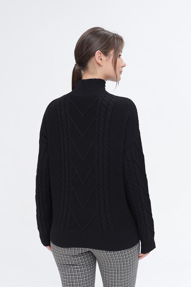 Чёрный пуловер Pezzo с высоким горлом и выразительным узором из кос. Изготовлен из мягкого и приятного к телу сочетания хлопка и акрила, обеспечивающего комфорт и тепло. Идеальный выбор для создания стильного и уютного образа. Состав: хлопок 60%, акрил 40%