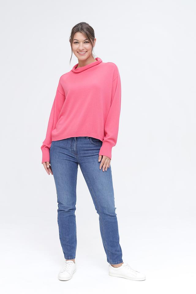 Розовый пуловер Pezzo с горлом – это стильная и комфортная модель на каждый день. Изготовлен из мягкой шерсти и хлопка, обеспечивающих тепло и уют. Идеально сочетается с джинсами и брюками. Состав: шерсть 57%, хлопок 43%