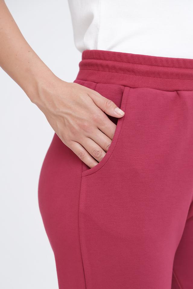 Спортивные брюки Pezzo малинового цвета — удобная и стильная модель для повседневной носки. Брюки выполнены из мягкого трикотажа с добавлением вискозы и эластана, обеспечивающего комфорт и свободу движений. Модель дополнена эластичным поясом с кулиской. Состав: полиэстер 49%, вискоза 46%, эластан 5%