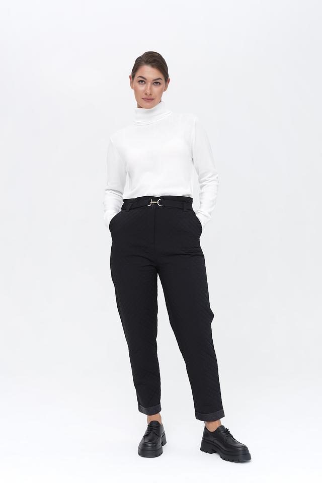 Представляем элегантные брюки от бренда Pezzo. Эта модель выполнена в классическом черном цвете и отличается оригинальной стеганой текстурой, которая придает изделию особый шарм.