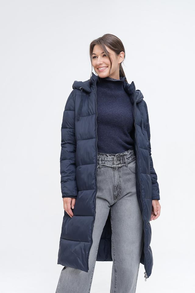 Тёмно-синее стеганое пальто Pezzo – это стильное и практичное решение для прохладной погоды. Удлиненный крой и капюшон обеспечивают дополнительную защиту от ветра и холода, а современный дизайн делает это пальто универсальным дополнением к вашему гардеробу. Состав: нейлон 100%, Состав_наполнитель полиэстер 100%, Состав_подкладка нейлон 100%