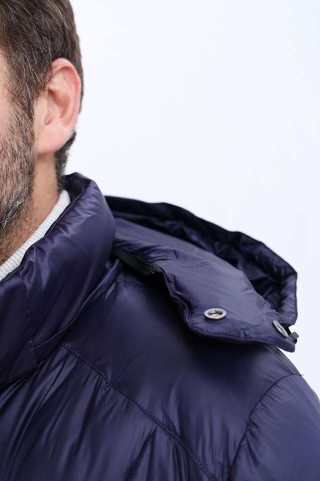 Стильная мужская куртка Pezzo синего цвета с капюшоном и стеганой фактурой. Изготовлена из прочного нейлона, обеспечивающего защиту от ветра и влаги. Идеальный выбор для прохладной погоды. Состав: нейлон 100%, Состав_наполнитель полиэстер 100%, Состав_подкладка полиэстер 100%