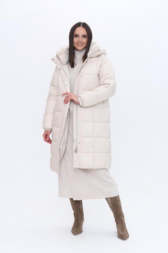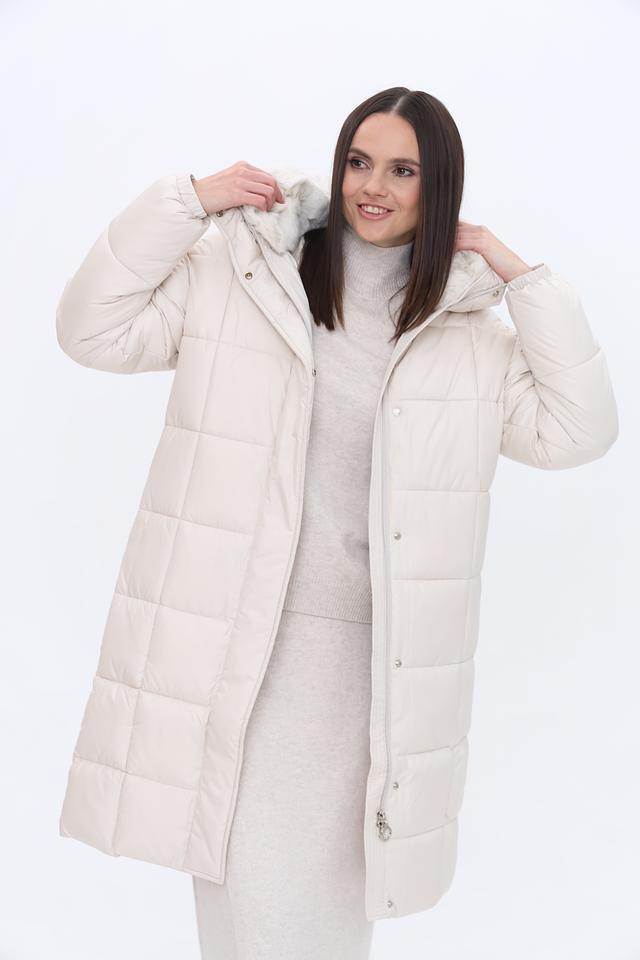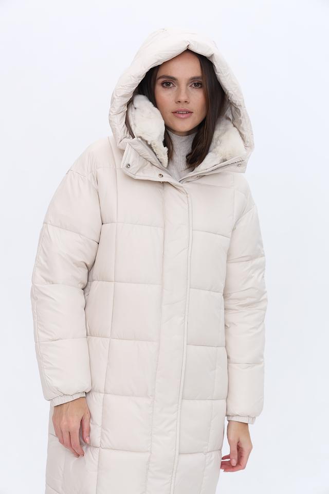Капюшон отделан мягким мехом кролика, обеспечивая дополнительное тепло и защиту от ветра. Застежка – молния. Пальто имеет удобные карманы.