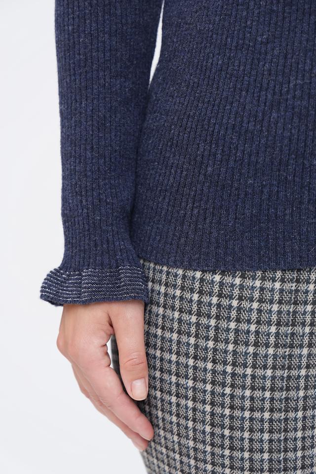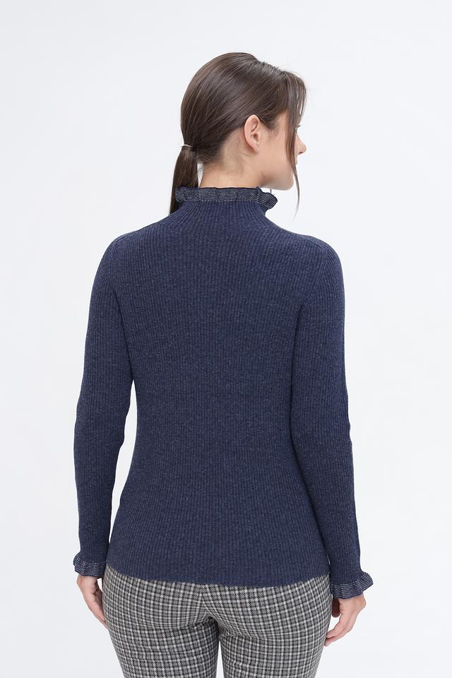 Тёмно-синий пуловер Pezzo с воротником-стойкой и декоративной отделкой на рукавах и горловине. Изготовлен из мягкой шерсти с добавлением нейлона для большей износостойкости. Состав: шерсть 80%, нейлон 20%