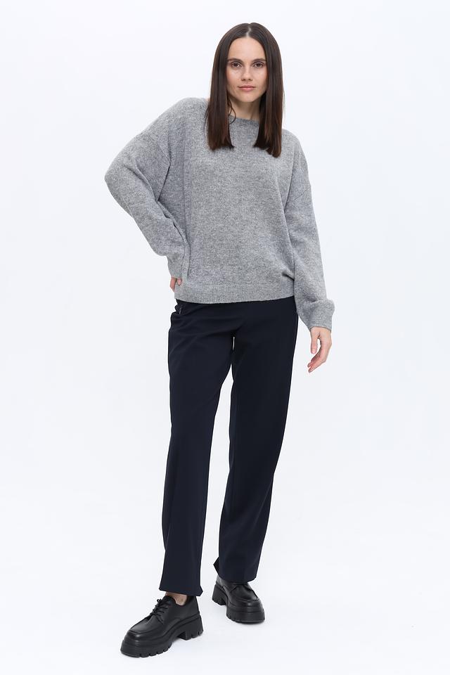 Пуловер имеет свободный, слегка объемный силуэт, который не сковывает движений и позволяет создавать расслабленные образы. Высокая округлая горловина добавляет элегантности, а длинные рукава с широкими манжетами обеспечивают дополнительное тепло в прохладную погоду.