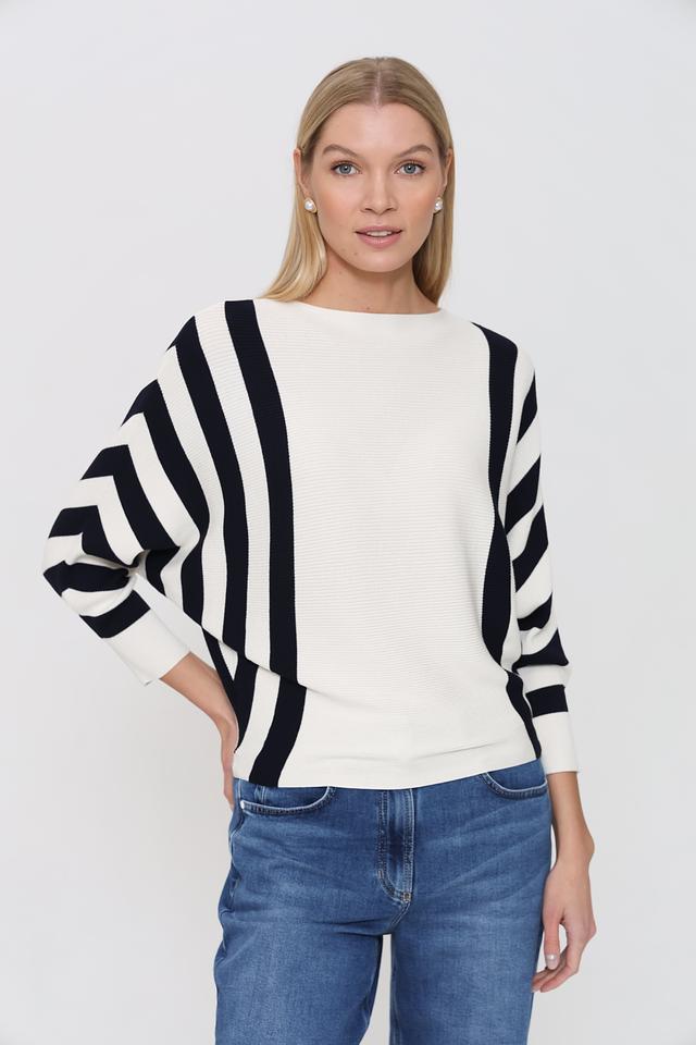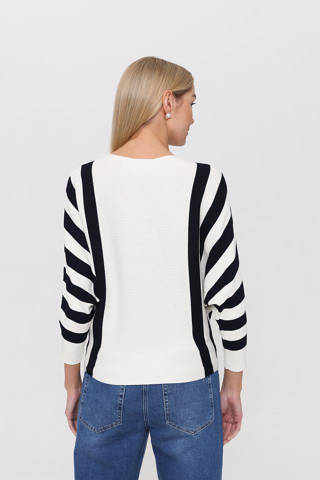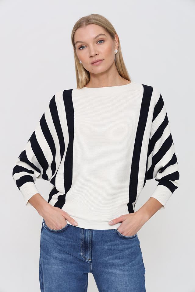 Этот пуловер от Pezzo – идеальный выбор для создания стильного и комфортного образа. Пуловер выполнен в белом цвете с выразительными чёрными полосами, которые придают ему динамичный и современный вид.