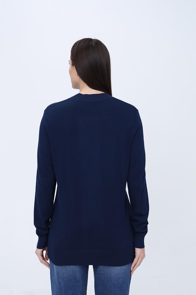 Синий пуловер Pezzo с вертикальной декоративной полосой из страз – стильное и комфортное решение для повседневного образа. Изготовлен из мягкой вискозы с добавлением нейлона, что обеспечивает приятные тактильные ощущения и хорошую посадку. Состав: вискоза 80%, нейлон 20%