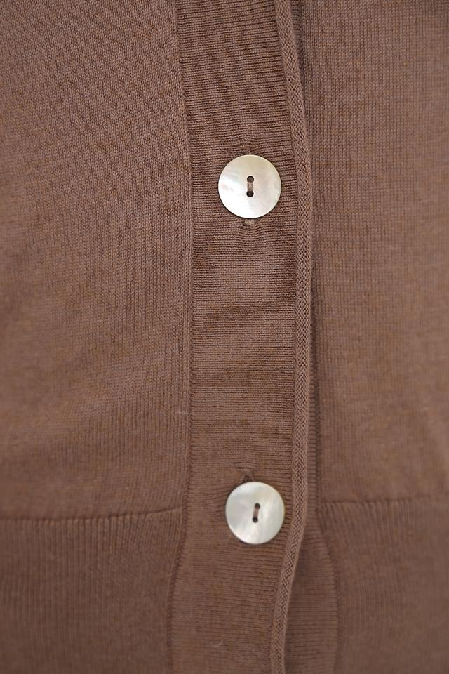 Коричневый кардиган Pezzo – это стильная и удобная модель с V-образным вырезом и застёжкой на пуговицы. Идеально дополнит повседневный образ, обеспечивая комфорт и тепло. Состав: хлопок 70%, нейлон 15%, шерсть 10%, шелк 5%