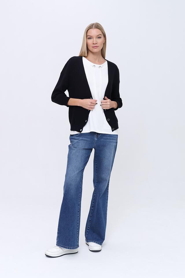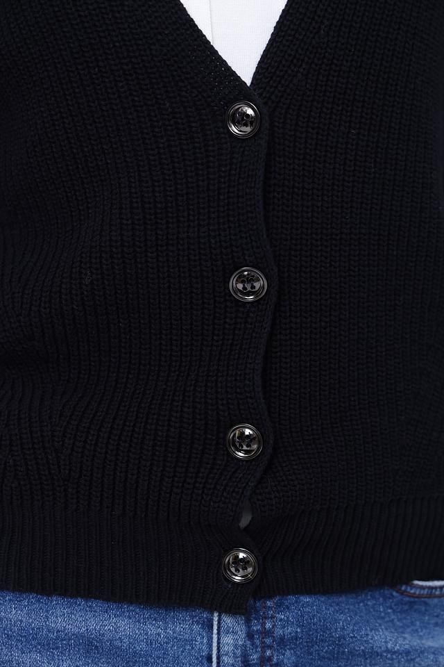 Классический V-образный вырез и застёжка на пуговицы придают кардигану элегантный вид. Укорочённый крой и рукава три четверти делают его идеальным для создания многослойных образов.
