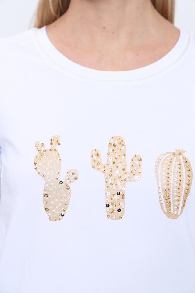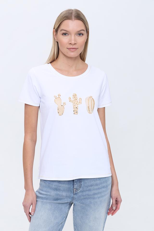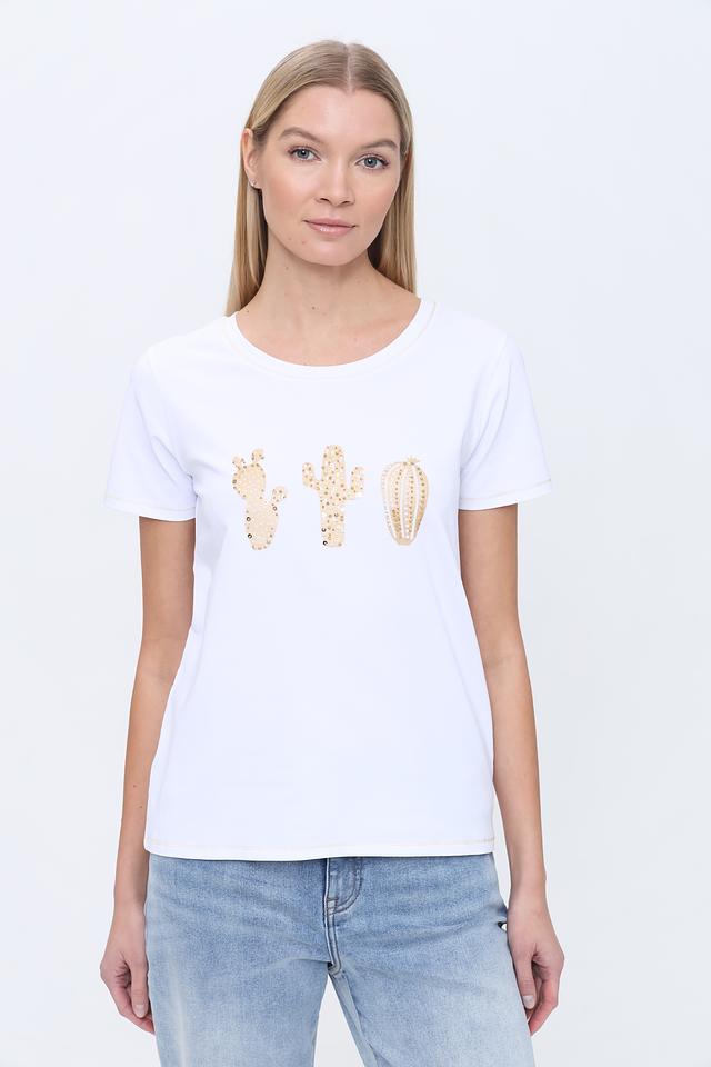 Белая футболка Pezzo с оригинальным принтом в виде кактусов, выполненная из мягкого хлопка с добавлением эластана. Стильный и комфортный выбор для повседневного образа. Состав: хлопок 95%, эластан 5%