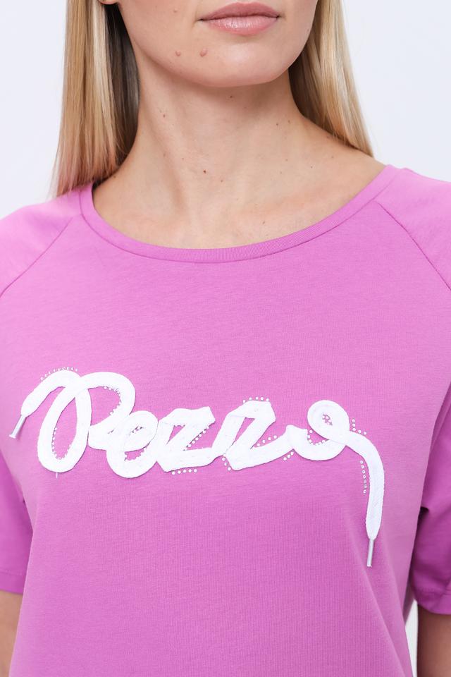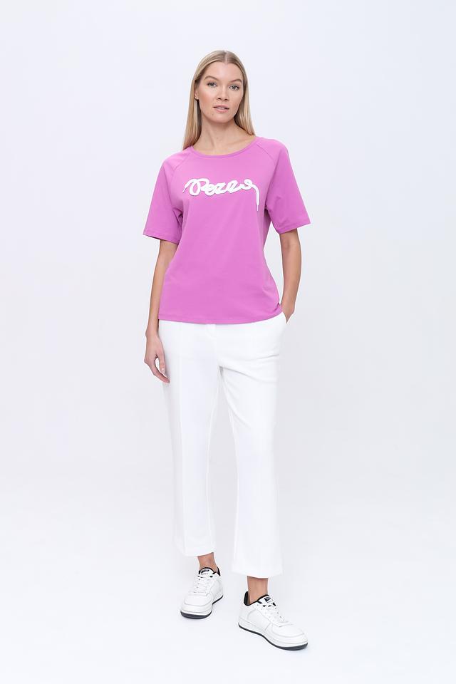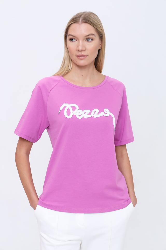 Женская футболка Pezzo сиреневого цвета с белым логотипом бренда на передней части. Изготовлена из мягкого хлопка, обеспечивающего комфорт в носке. Отличный выбор для создания повседневных образов. Состав: хлопок 100%