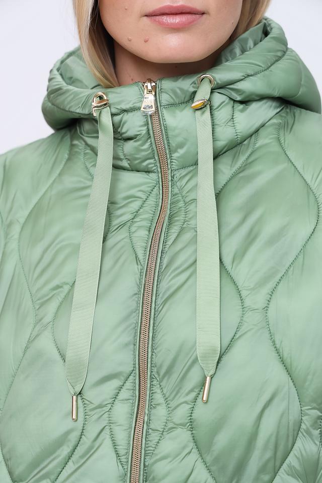 Куртка имеет стеганую текстуру, которая придает ей современный вид. Застежка – молния, что обеспечивает удобство и быстроту одевания. Капюшон добавляет функциональности и защищает от ветра и небольшого дождя.