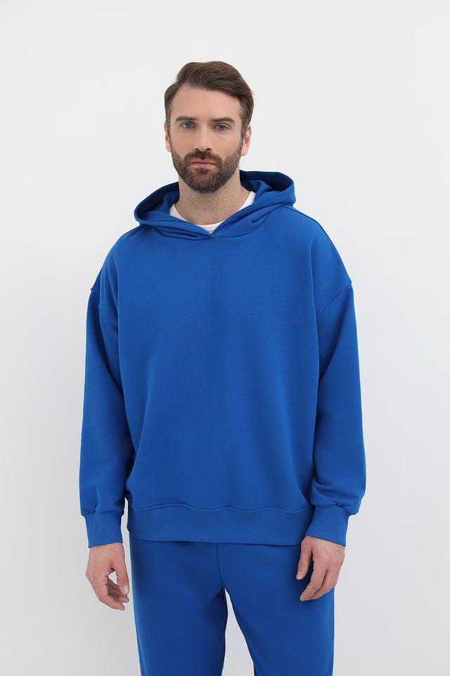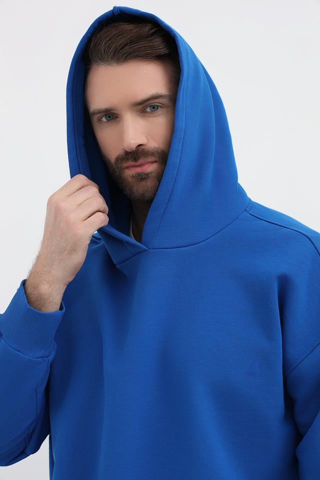 Синий пуловер Pezzo с капюшоном – это удобная и стильная модель для повседневной носки. Выполнен из мягкого хлопка с добавлением полиэстера, обеспечивающего износостойкость. Свободный крой и лаконичный дизайн делают этот пуловер универсальным элементом гардероба. Состав: хлопок 70%, полиэстер 30%