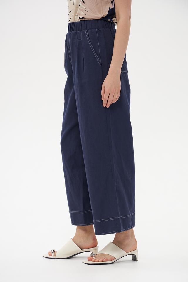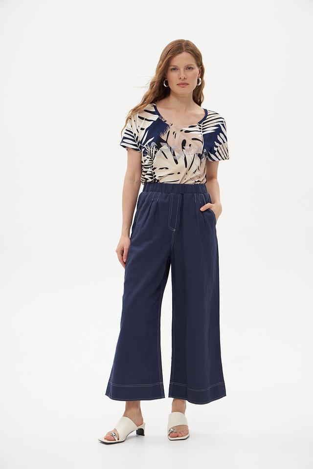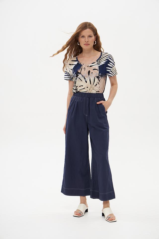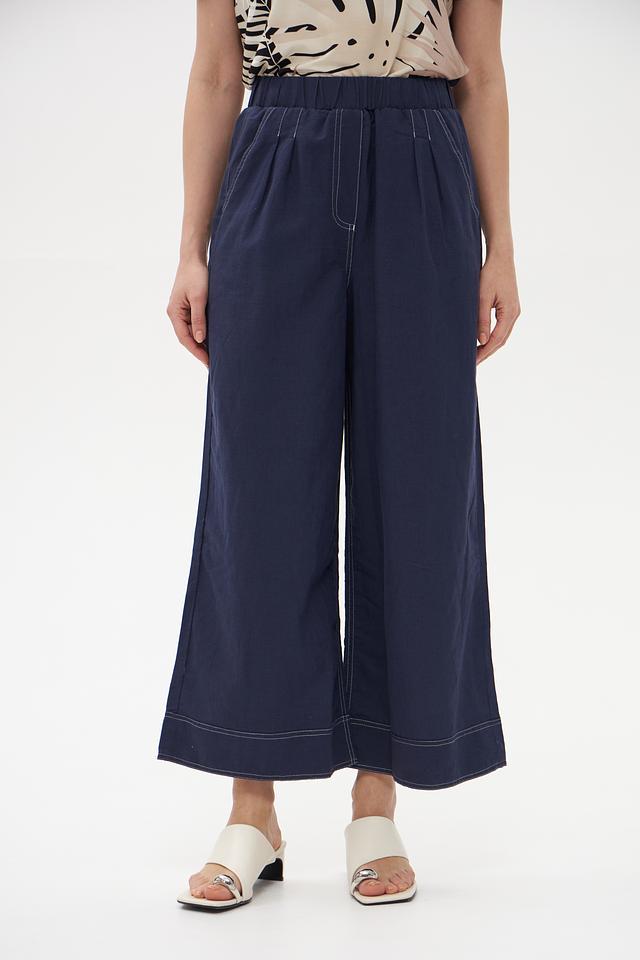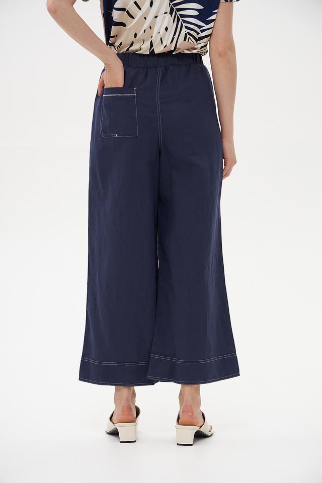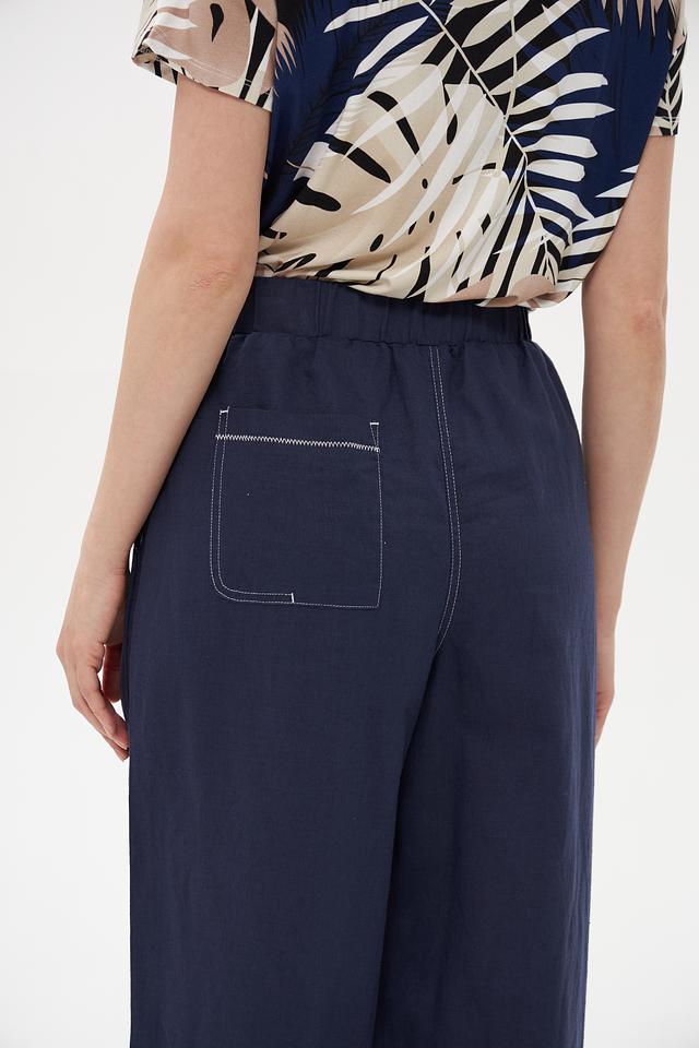 Синие брюки-кюлоты от Pezzo из льна и хлопка – стильное и комфортное решение для летнего гардероба. Прямой крой и высокая посадка обеспечивают свободу движений и безупречную посадку. Состав: лен 55%, хлопок 45%