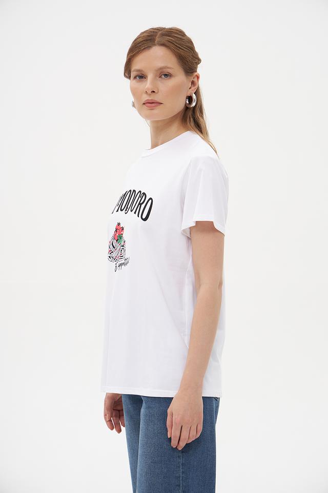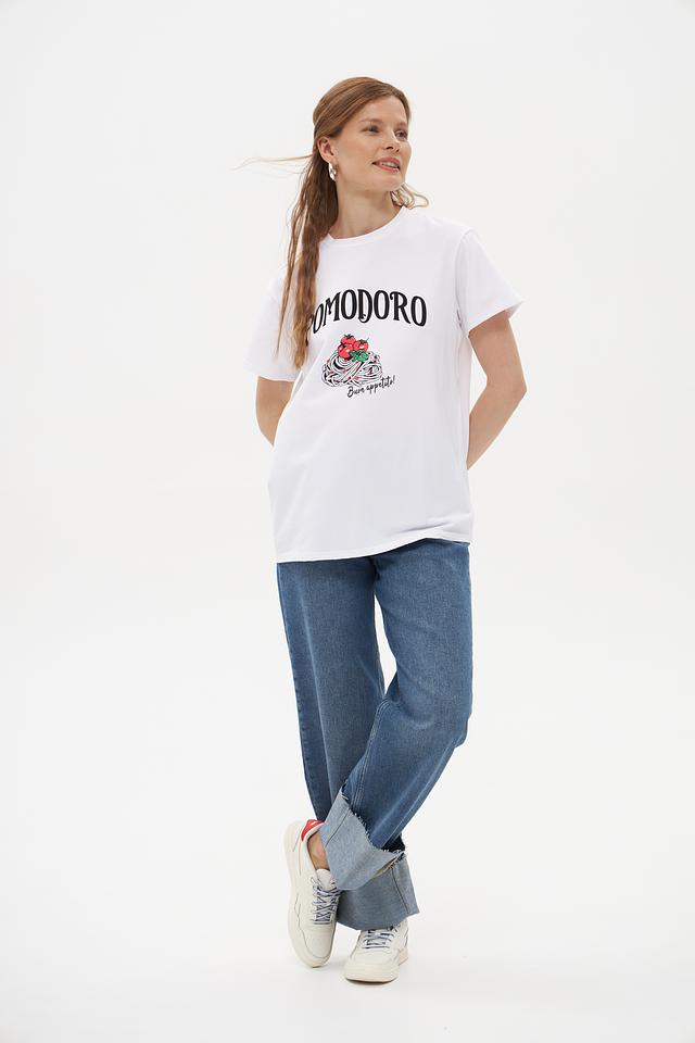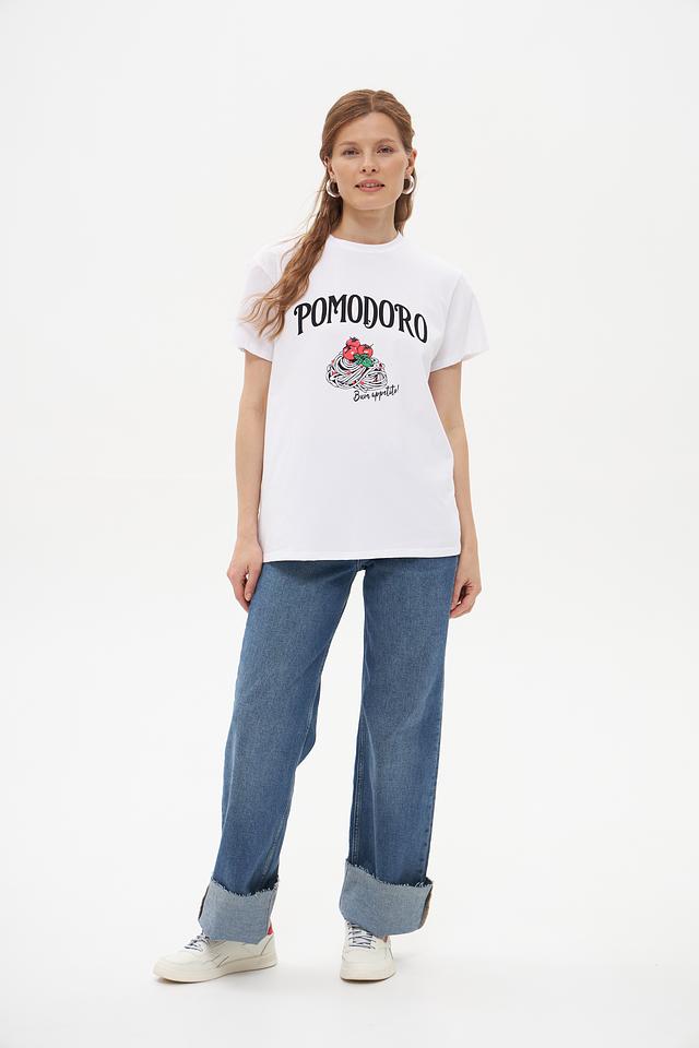 Белая футболка Pezzo с ярким принтом "Pomodoro" добавит игривости вашему образу. Изготовлена из мягкого хлопка с добавлением эластана для комфорта и свободы движений. Состав: хлопок 95%, эластан 5%