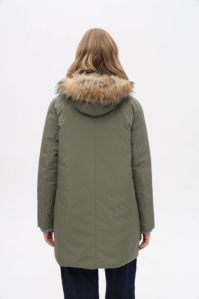 Куртка имеет прямой крой, который не сковывает движения и хорошо сочетается с различными стилями одежды. Капюшон дополнен отделкой из искусственного меха, защищающей от холода и ветра.