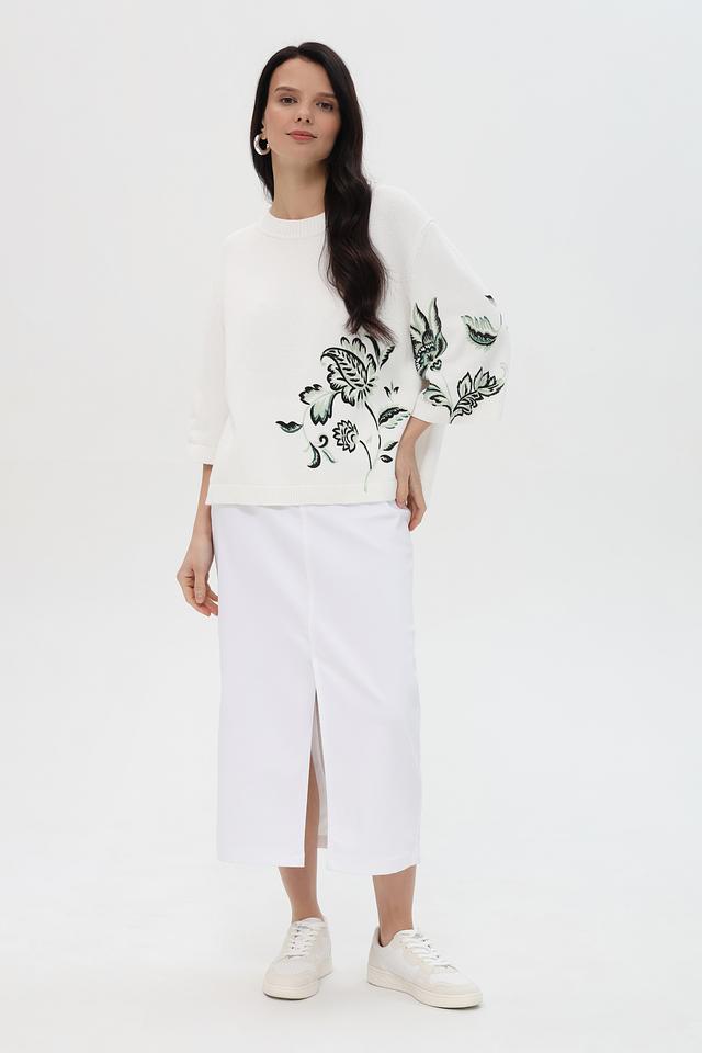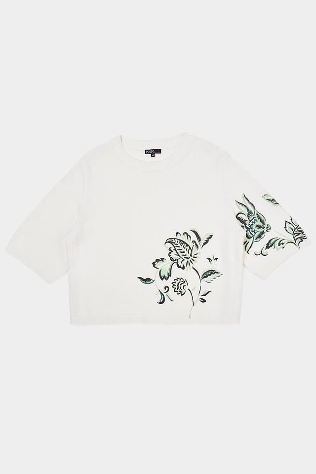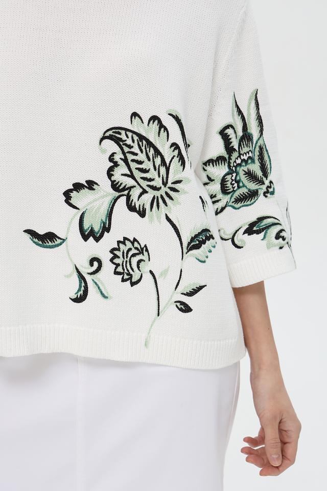 Этот стильный пуловер от Pezzo станет прекрасным дополнением к вашему гардеробу. Пуловер выполнен в белом цвете и украшен ярким цветочным принтом, который придает ему особую изысканность.