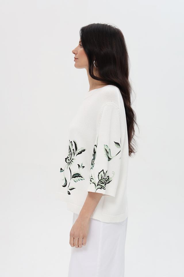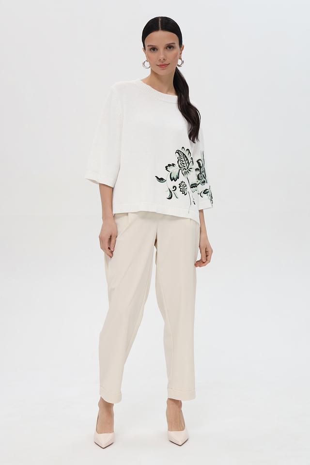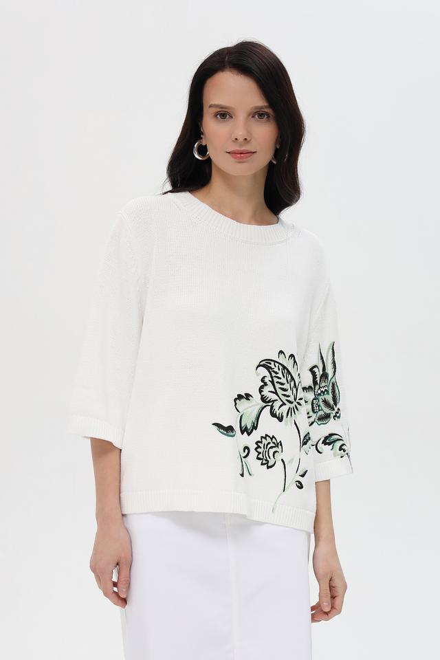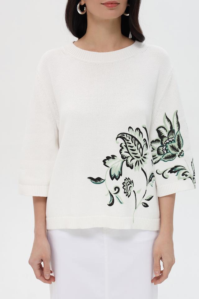 Белый пуловер Pezzo с короткими рукавами украшен ярким цветочным принтом. Модель выполнена из мягкого хлопка, обеспечивающего комфорт в носке. Идеальный выбор для создания стильного и женственного образа. Состав: хлопок 100%