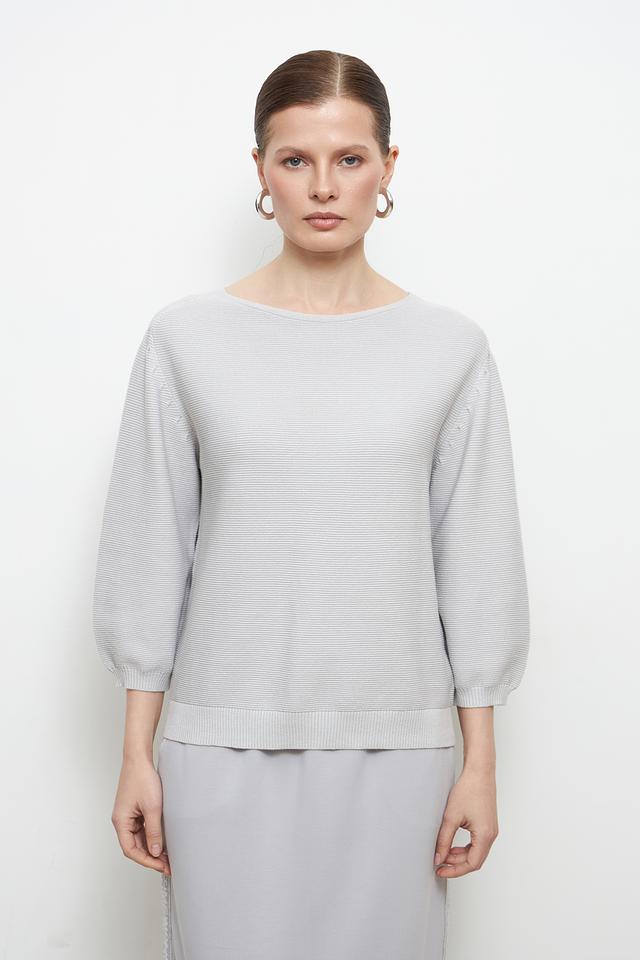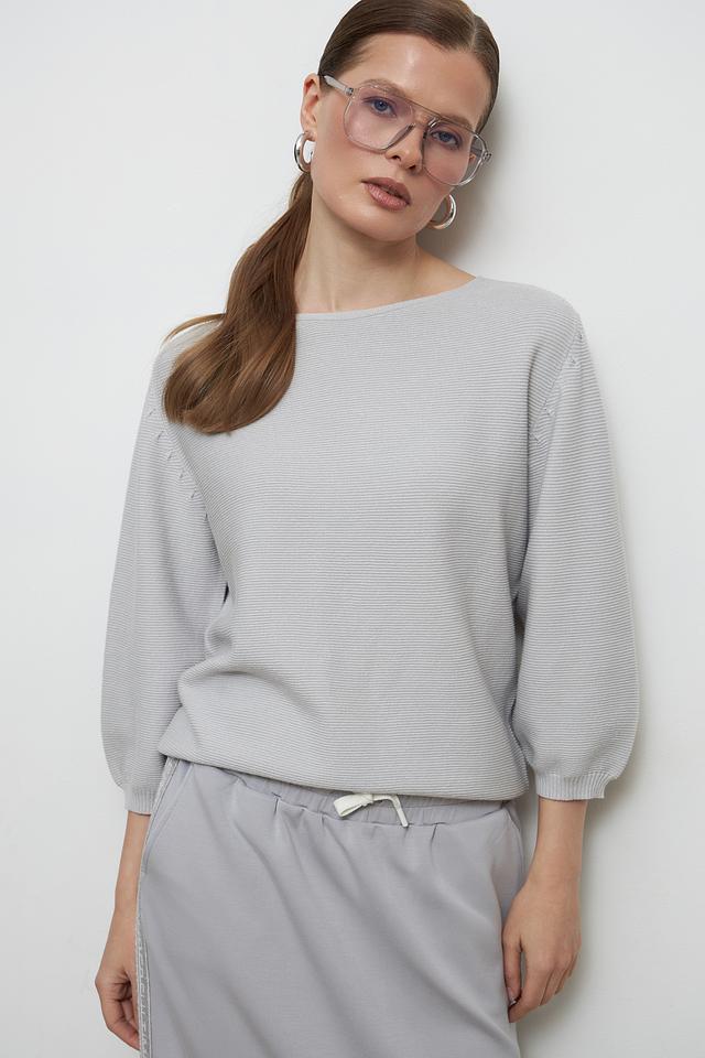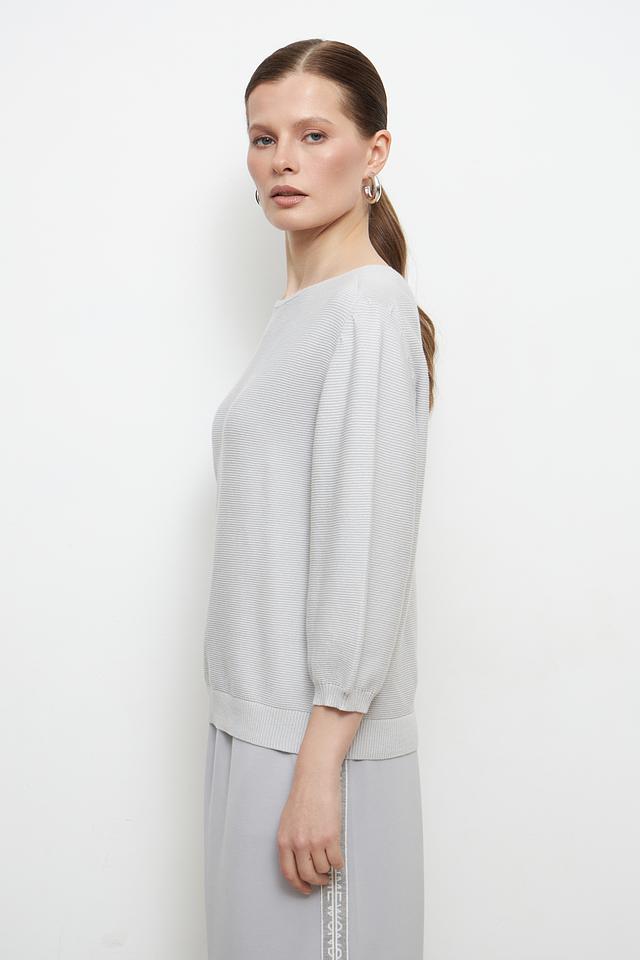 Серый пуловер Pezzo с полосатой текстурой и рукавами 3/4 станет отличным дополнением к вашему гардеробу. Изготовлен из 100% хлопка, обеспечивая комфорт и удобство в носке. Состав: хлопок 100%