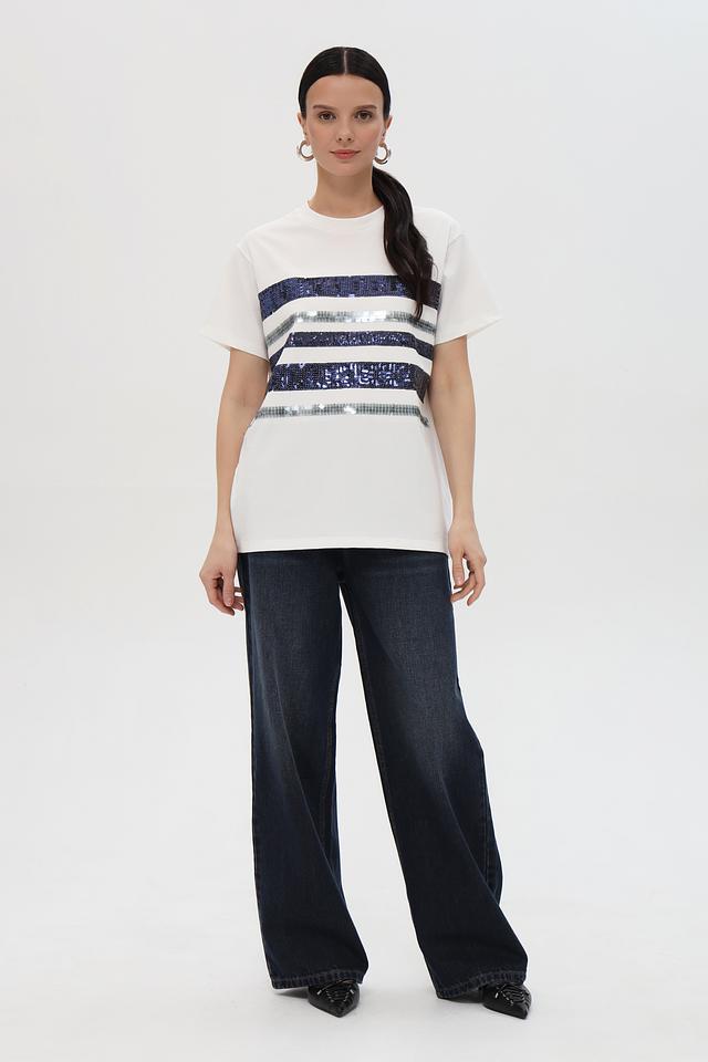 Крой футболки свободный, что обеспечивает свободу движений. Округлый вырез горловины и короткие рукава делают ее идеальной для теплой погоды. Эта футболка станет отличным выбором для создания повседневных образов.