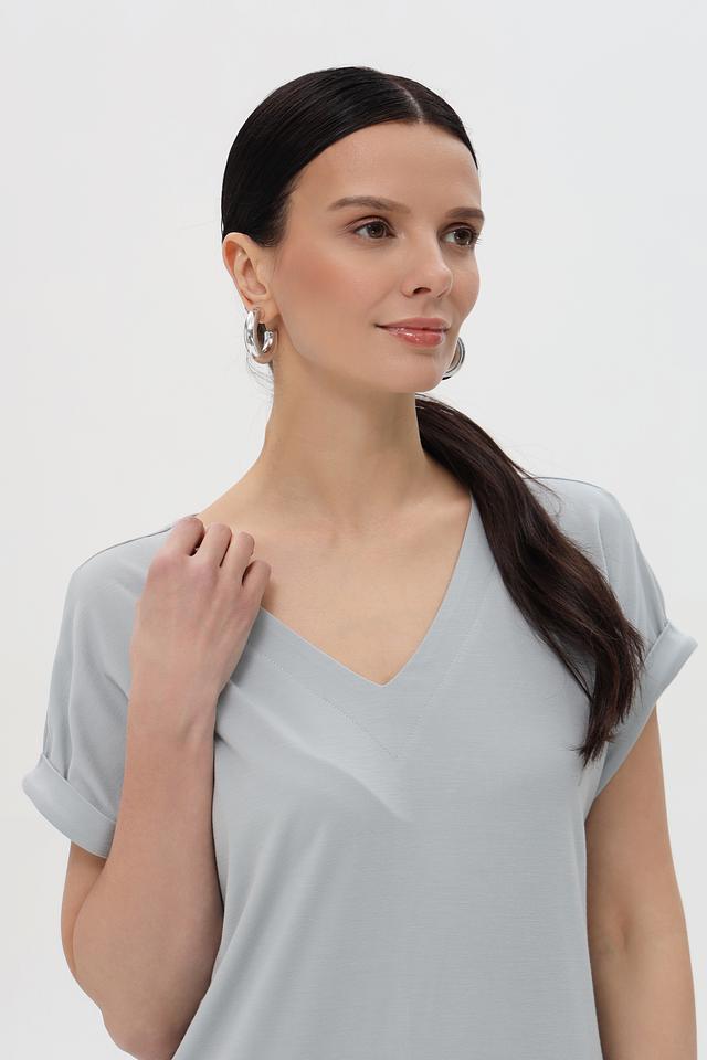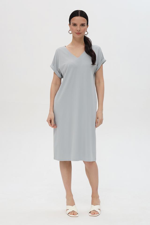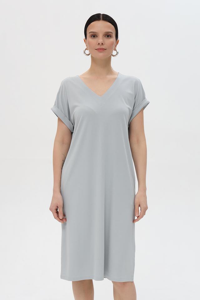 Стильное платье Pezzo серого цвета – это идеальный выбор для создания комфортного и элегантного образа. Платье имеет прямой крой, короткие рукава и V-образный вырез. Изготовлено из мягкой и приятной к телу ткани. Состав: вискоза 55%, полиамид 37%, эластан 8%
