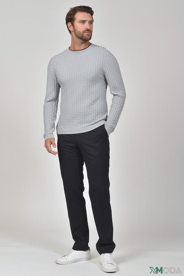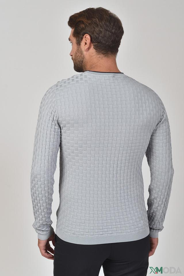 Мужской джемпер от бренда Pezzo выполнен в сером цвете и отличается необычной текстурой, напоминающей плетёную ткань. Модель имеет круглый вырез горловины и длинные рукава.