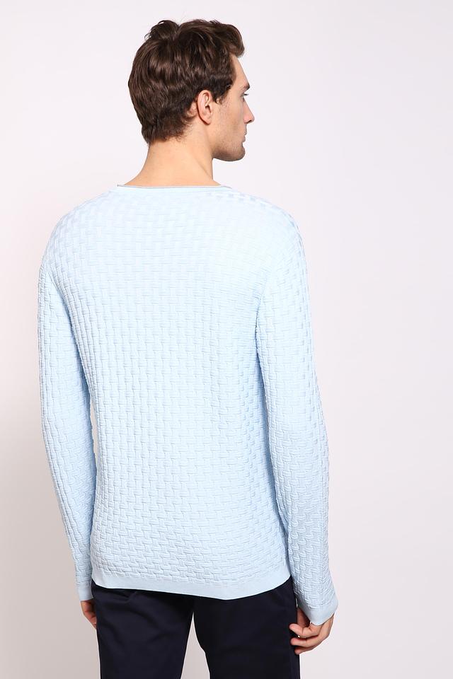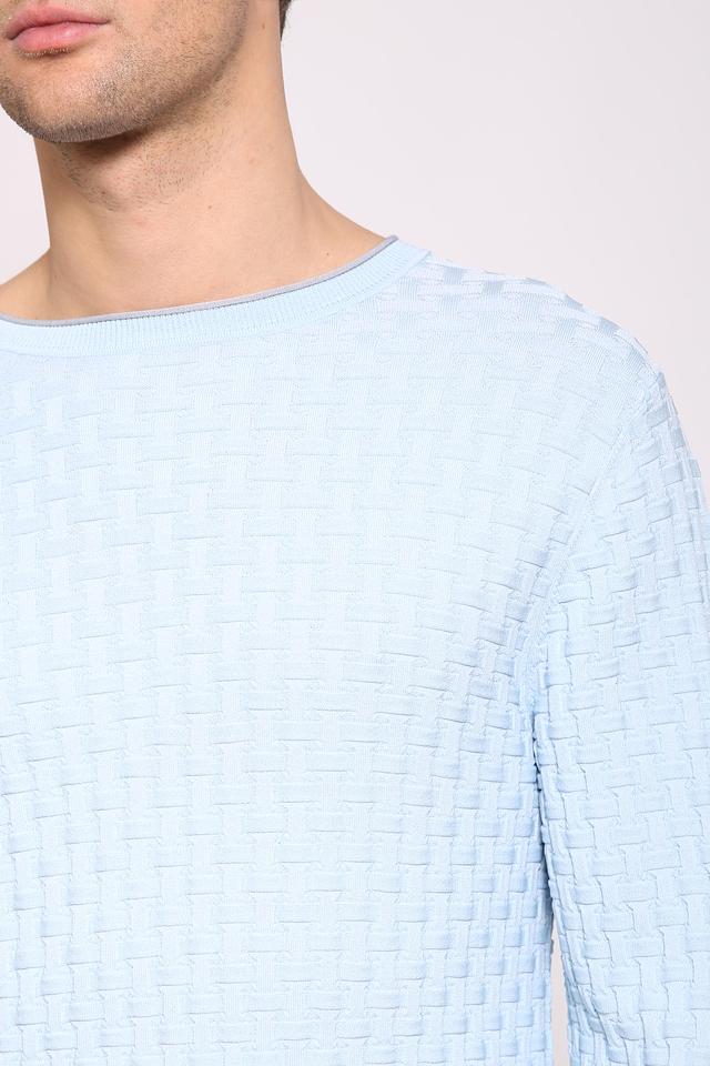 Мужской джемпер Pezzo голубого цвета с текстурной вязкой. Изготовлен из мягкого и приятного к телу сочетания вискозы и нейлона, обеспечивающего комфорт и долговечность. Идеальный выбор для создания стильного и уютного образа. Состав: вискоза 65%, нейлон 35%