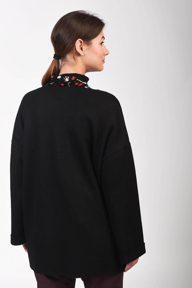 Чёрный кардиган Pezzo свободного кроя – стильное и комфортное решение для создания повседневных образов. Модель выполнена из мягкой ткани с добавлением шерсти, что обеспечивает тепло и уют. Оверсайз силуэт делает кардиган универсальным элементом гардероба. Состав: шерсть 60%, полиэстер 40%