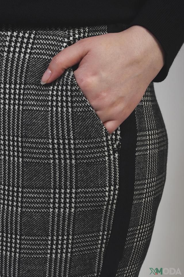 Женские брюки Pezzo серого цвета в классическую клетку с контрастной боковой полосой. Модель выполнена из мягкой ткани с добавлением эластана для комфортной посадки и свободы движений. Состав: хлопок 88%, нейлон 10%, спандекс 2%