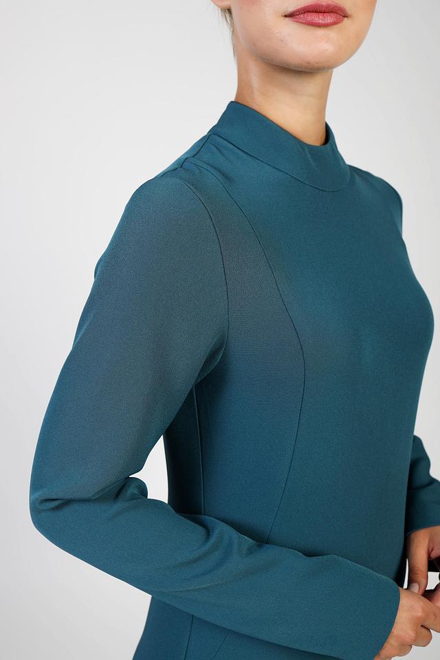 Это элегантное платье от бренда Pezzo выполнено в насыщенном изумрудном цвете. Приталенный силуэт подчеркивает фигуру, а длина миди делает его универсальным для различных случаев.
