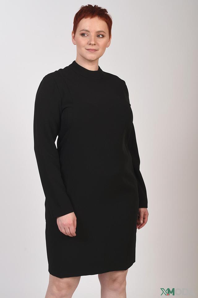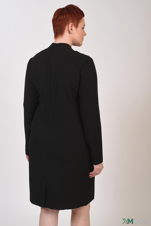 Платье имеет длину до колена и длинные рукава, что делает его подходящим для различных случаев – от офиса до вечерних мероприятий. Высокий округлый вырез горловины добавляет элегантности.