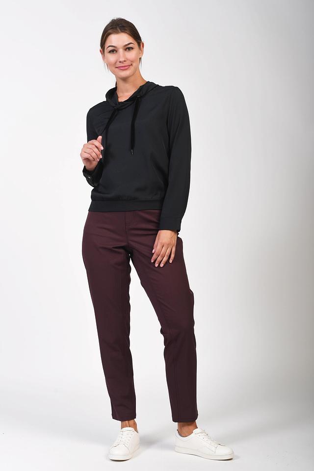 Эта блуза от Pezzo выполнена в классическом чёрном цвете и станет универсальным дополнением к вашему гардеробу. Модель имеет прямой крой и длинные рукава, а также капюшон со шнурками для регулировки.