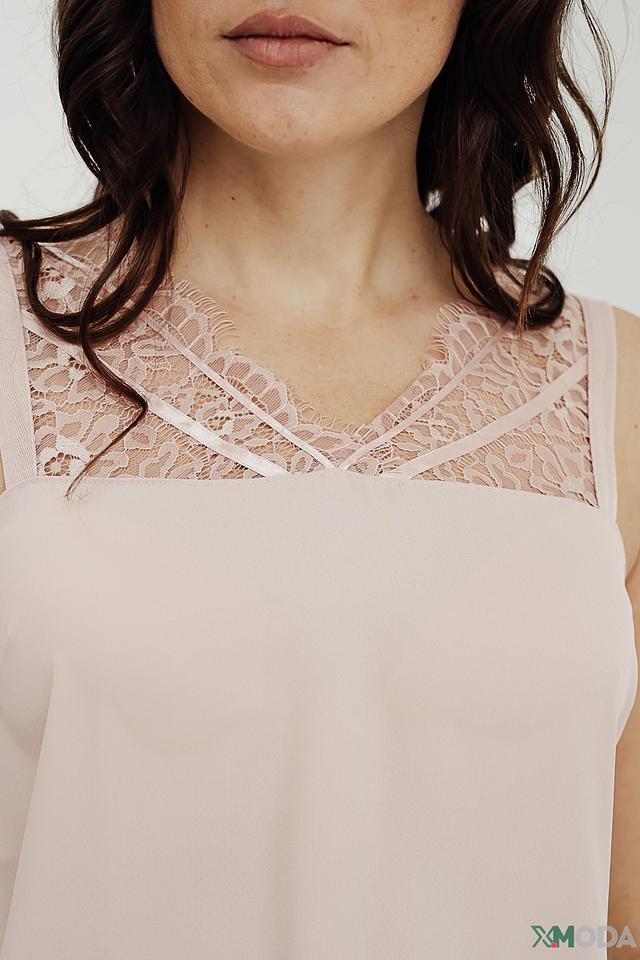 Топ имеет прямой крой и тонкие бретели, что обеспечивает комфортную посадку. Отделка из изящного кружева на лифе добавляет изысканности и делает этот топ особенным.