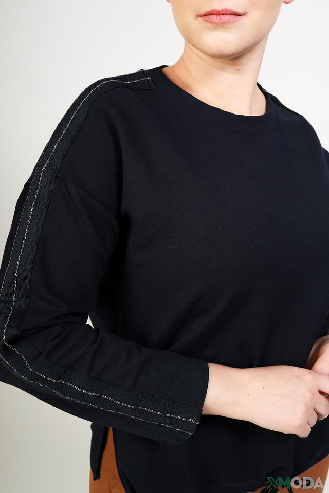 Пуловер имеет свободный крой, который не сковывает движения и позволяет создать расслабленный образ. Декоративная полоска на рукавах добавляет изюминку и делает модель более интересной.